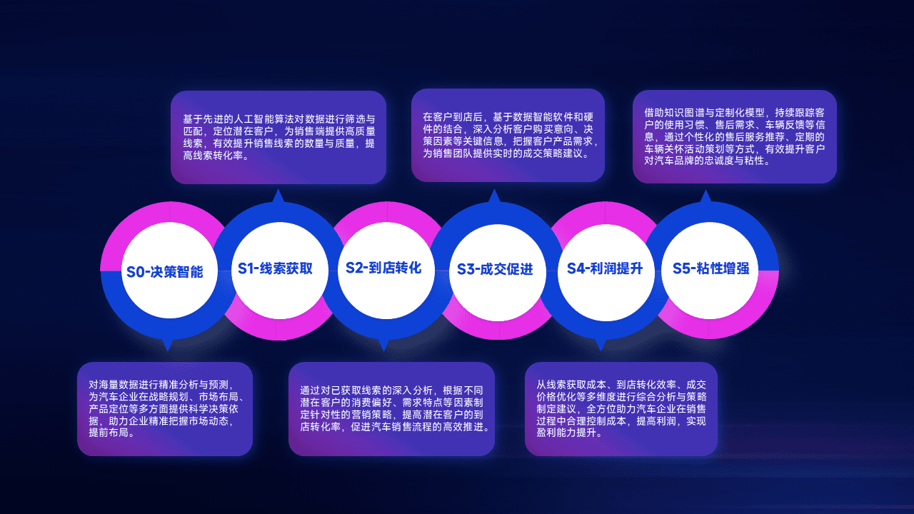 通过拓宽潜在客户来源、、优化线索分配并提高到店转化率,,,以增强销售效率。。。。同时,,利用线索数据不断优化分析模型,,有效提升转化率,,,扩大营销影响力。。。